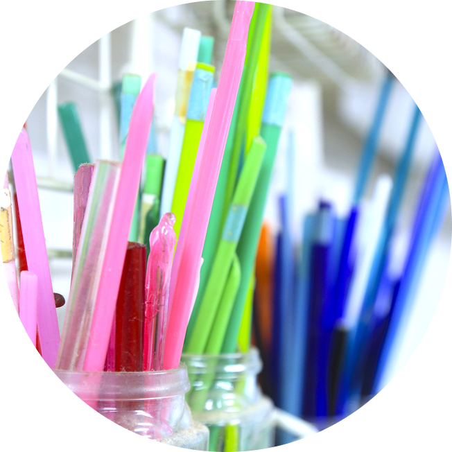 円筒の中にガラス板を入れ、先端部にオブジェクトと呼ばれる物(色ガラス、色紙、ビーズ、鉱物、ドライフラワーなど)の小片を入れて見ます。