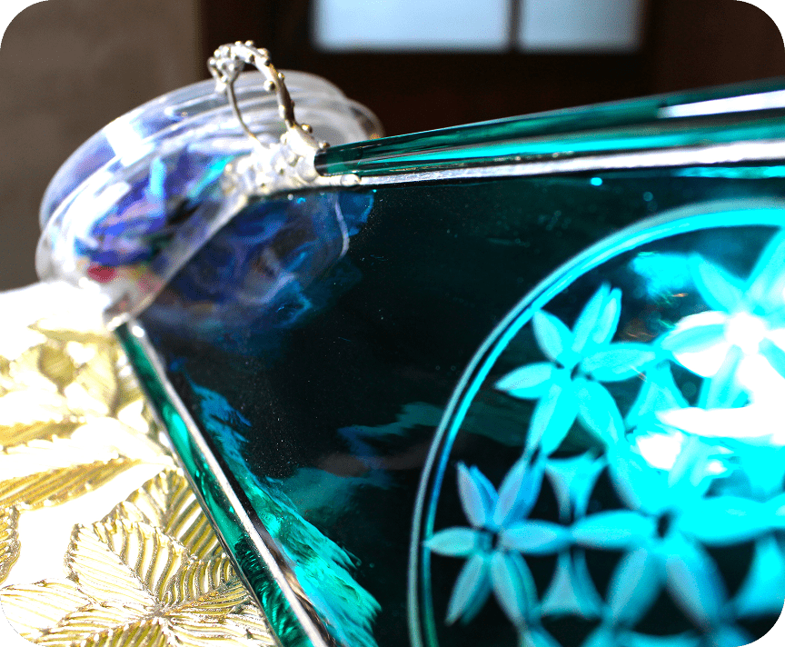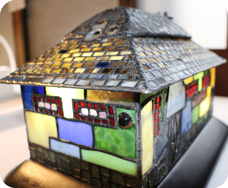 丁寧に時間をかけてステンドグラスで作られた家型万華鏡