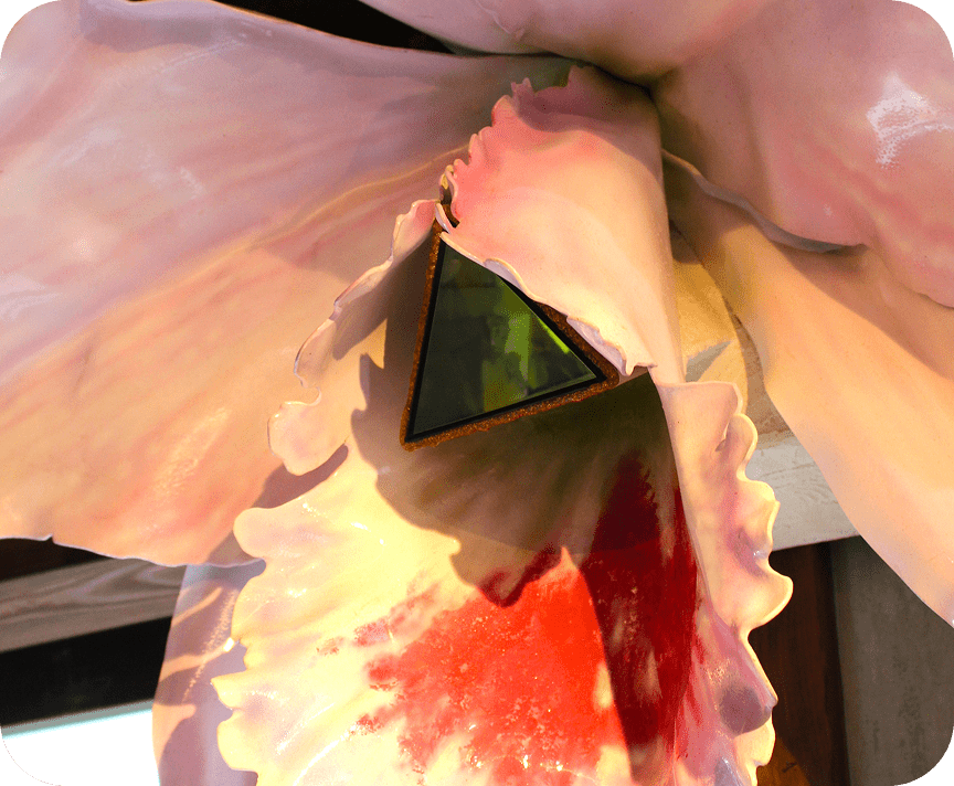 デジタルフォトフレームを採用し、花々の画像を楽しめる万華鏡